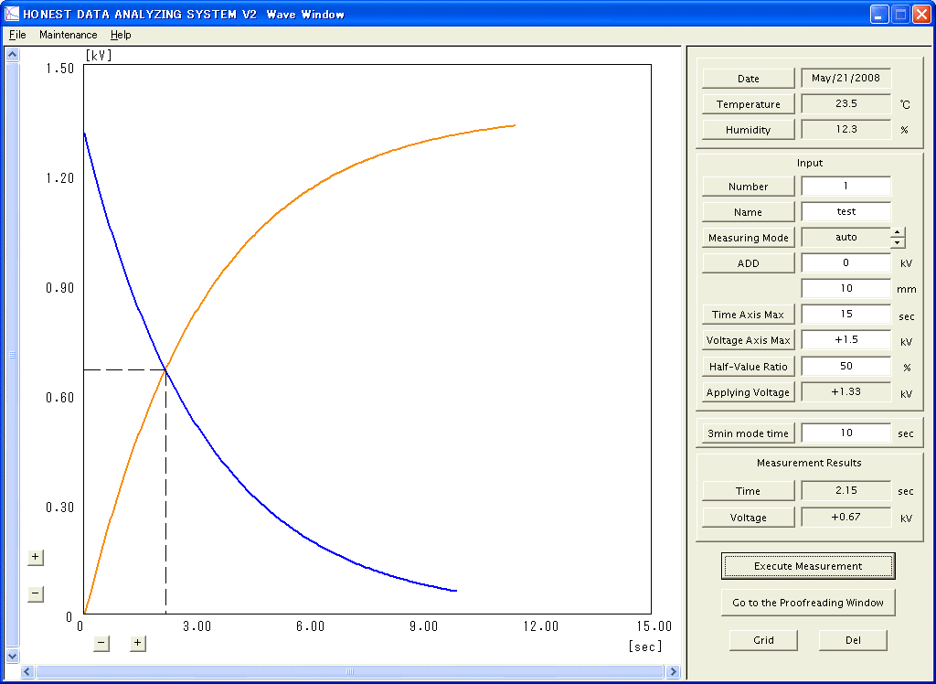 2.测试数据的保存:本机具有自动测量静电衰减曲线,自动计算出电压衰减的半衰期,自动保存至电脑的HDD系统。